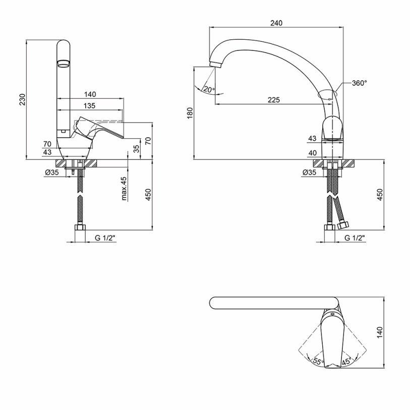 | Доп. характеристики | Длина гибкого подвода – 450 мм. |