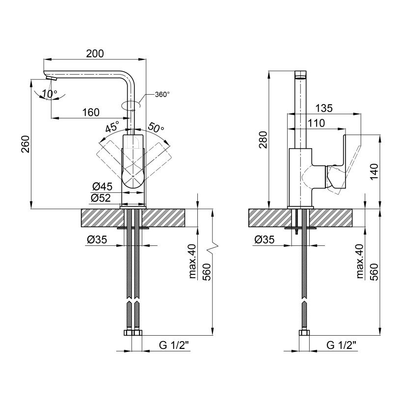 | Высота излива, мм | 260 |