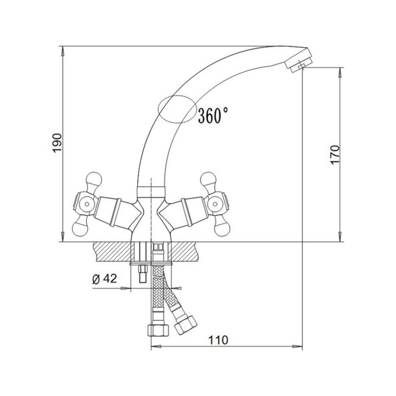 | Комплектация | Смеситель, гибкая подводка, крепеж. |