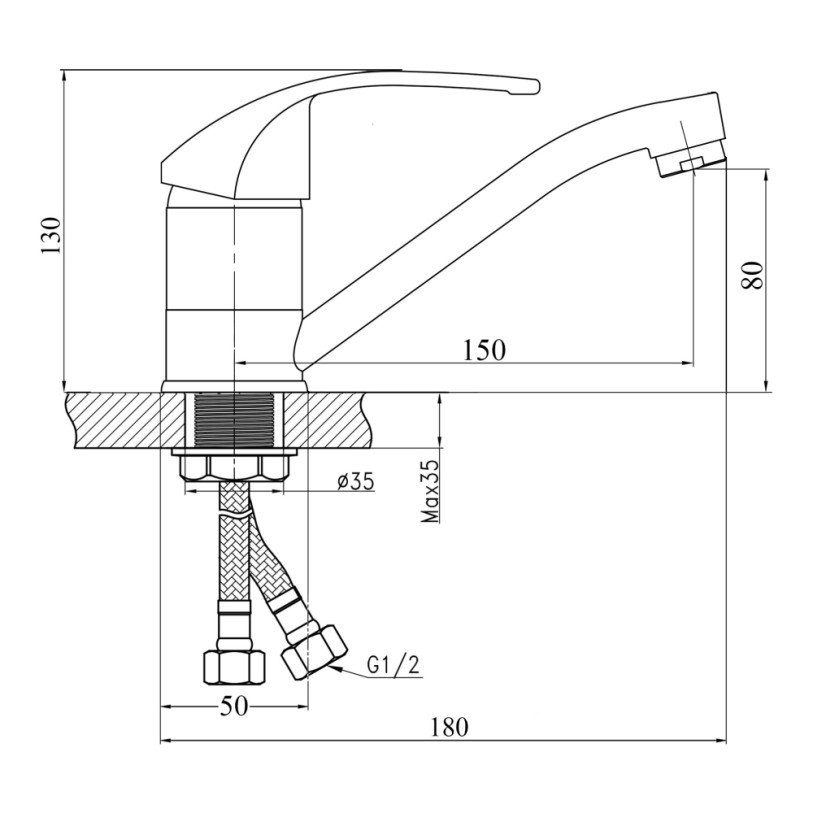 | Комплектация | Смеситель, гибкая подводка, крепеж. |