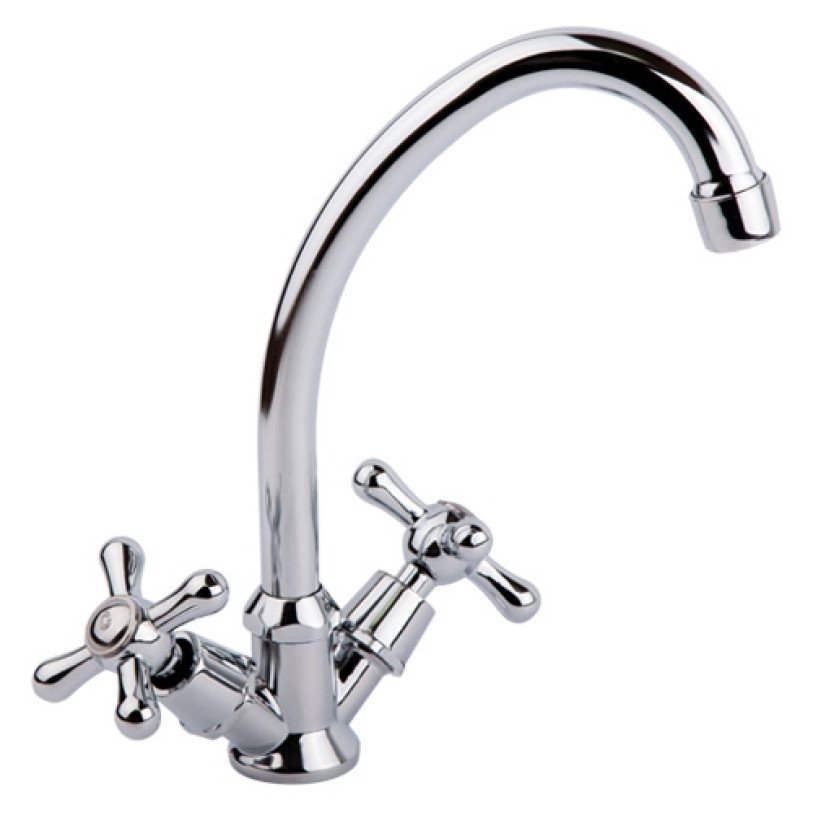 Смеситель для кухни SW Olympic 2712 изготовлен из силумина. Благодаря глянцевому хромированному покрытию имеет оригинальный внешний вид. Выполнен в классическом стиле, с вентильными ручками для переключения потока холодной и горячей воды. Такой смеситель не только удобен и практичен, но и идеально впишется в интерьер кухни.