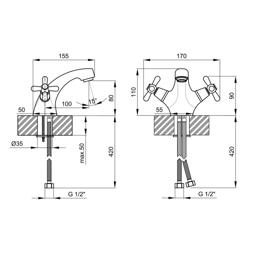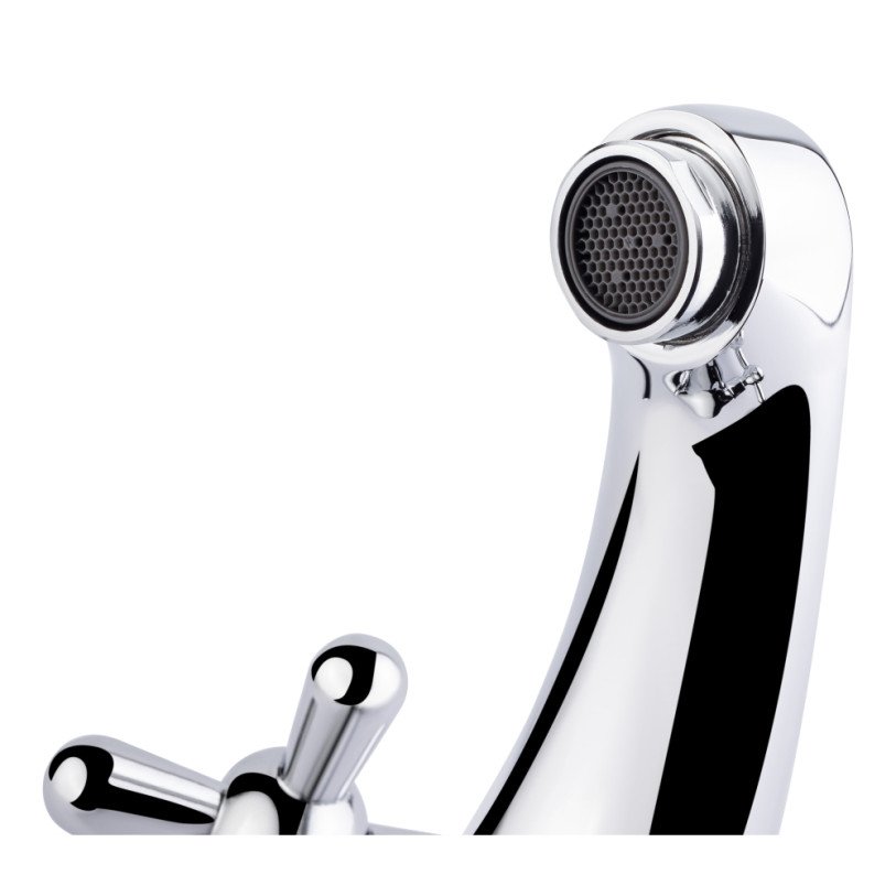 Смеситель для раковины Lidz (CRM) Dominox 15 161 изготовлен из качественной латуни с глянцевой хромированной поверхностью. Он монтируется в отверстие для смесителя на раковине или на столешнице врезным способом. Напор воды и ее температура регулируются поворотом вентилей в необходимое положение. Подключение воды осуществляется при помощи шлангов гибкой подводки, которые входят в комплект поставки.