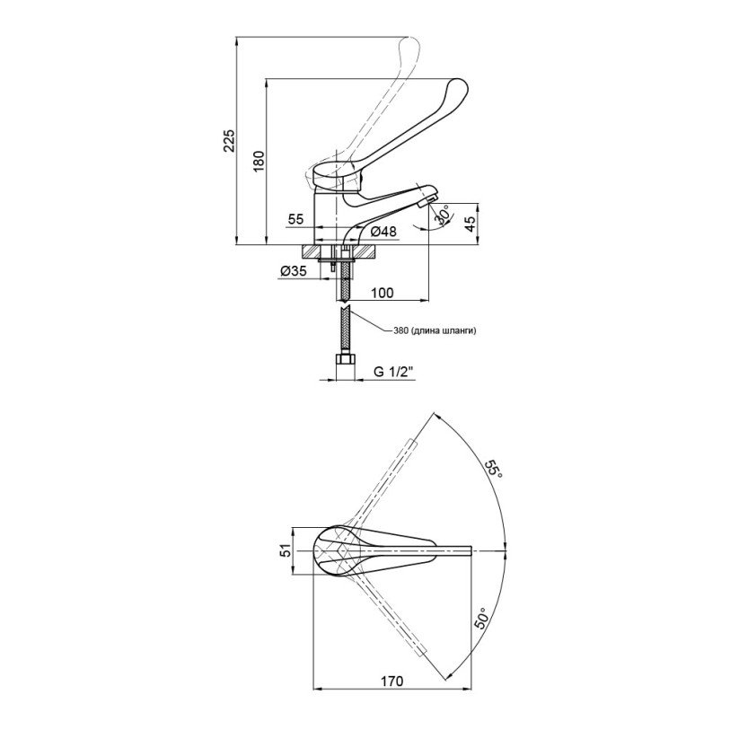 | Комплектация | Смеситель, гибкая подводка, крепежи. |