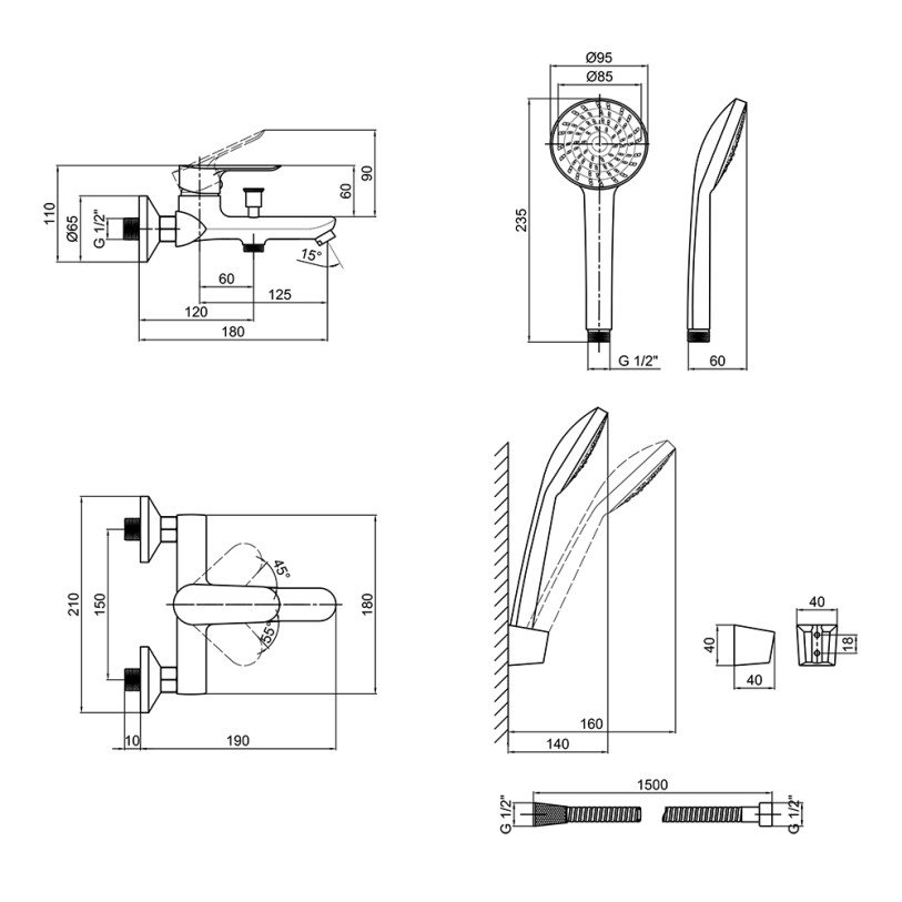 | Комплектация | Смеситель, лейка для ручного душа, душевой шланг, кронштейн для ручного душа, крепежи. |