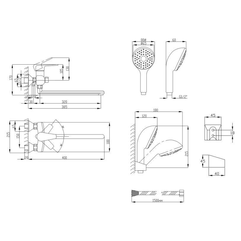 | Комплектация | Смеситель, лейка для ручного душа, душевой шланг, держатель для ручного душа, крепежи. |