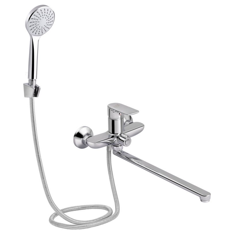 Смеситель для ванны Lidz (CRM) 23 48 005A-1 New с длинным поворотным изливом изготовлен из цинка, укомплектован кронштейном для ручного душа, душевым шлангом и лейкой. Благодаря хромированному покрытию имеет прочную поверхность и привлекательный внешний вид. Декоративные розетки скроют погрешности установки на отделке комнаты. Напор воды и ее температура регулируются поворотом рычага в необходимое положение. Переключение ванна/душ осуществляется при помощи дивертора.