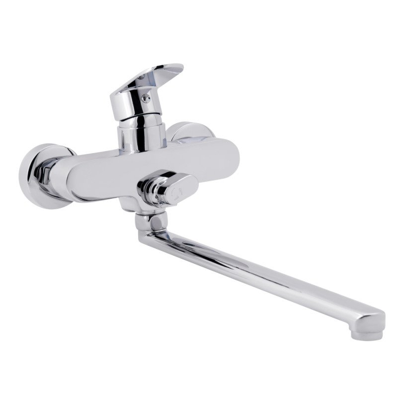 Смеситель для ванны Lidz (CRM) 22 44 005-1 New с длинным поворотным изливом изготовлен из цинка, укомплектован кронштейном для ручного душа, душевым шлангом и лейкой. Благодаря качественному хромированному покрытию имеет прочную поверхность и привлекательный внешний вид. Декоративные розетки скроют погрешности установки на отделке комнаты. Напор воды и ее температура регулируются поворотом рычага в необходимое положение. Переключение ванна/душ осуществляется при помощи дивертора.