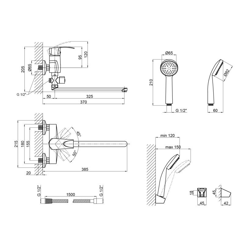 | Комплектация | Смеситель, лейка для ручного душа, душевой шланг, кронштейн для ручного душа, крепеж. |
