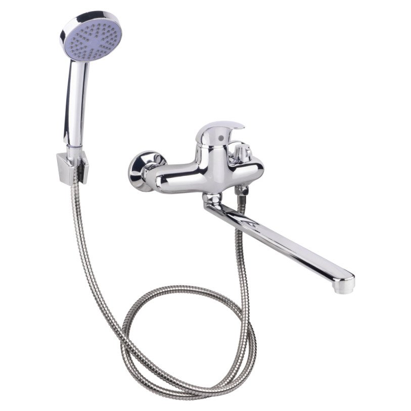 Смеситель для ванны Lidz (CRM) 43 79 001 New с длинным поворотным изливом изготовлен из цинка, укомплектован кронштейном для ручного душа, душевым шлангом и лейкой. Благодаря хромированному покрытию имеет прочную поверхность и привлекательный внешний вид. Декоративные розетки скроют погрешности установки на отделке комнаты. Напор воды и ее температура регулируются поворотом рычага в необходимое положение. Переключение ванна/душ осуществляется при помощи дивертора.