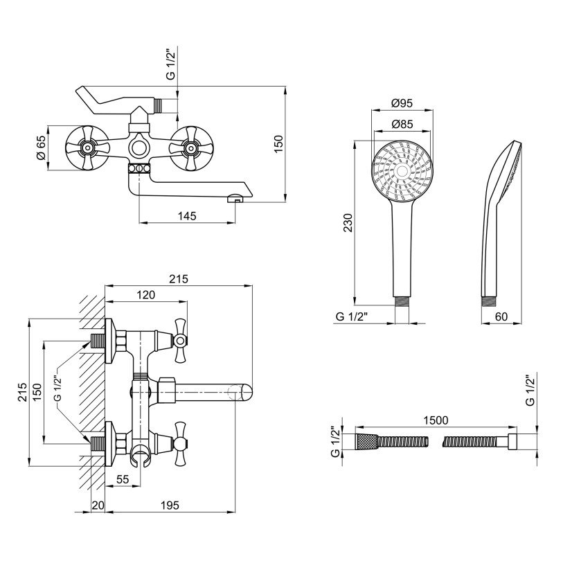 | Комплектация | Смеситель, лейка для ручного душа, душевой шланг, держатель для ручного душа, крепежи. |