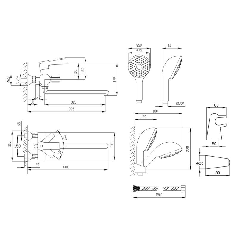 | Комплектация | Смеситель, лейка для ручного душа, душевой шланг, держатель для ручного душа, крепежи. |