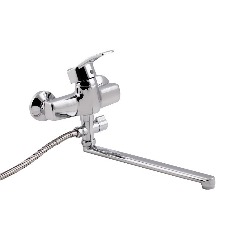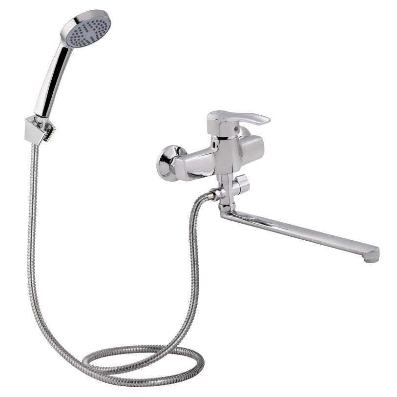Смеситель для ванны Lidz (CRM) 41 86 005C-2 с длинным поворотным изливом изготовлен из цинка, укомплектован кронштейном для ручного душа, душевым шлангом и лейкой. Благодаря хромированному покрытию имеет прочную поверхность и привлекательный внешний вид. Декоративные розетки скроют погрешности установки на отделке комнаты. Напор воды и ее температура регулируются поворотом рычага в необходимое положение. Переключение ванна/душ осуществляется при помощи дивертора.
