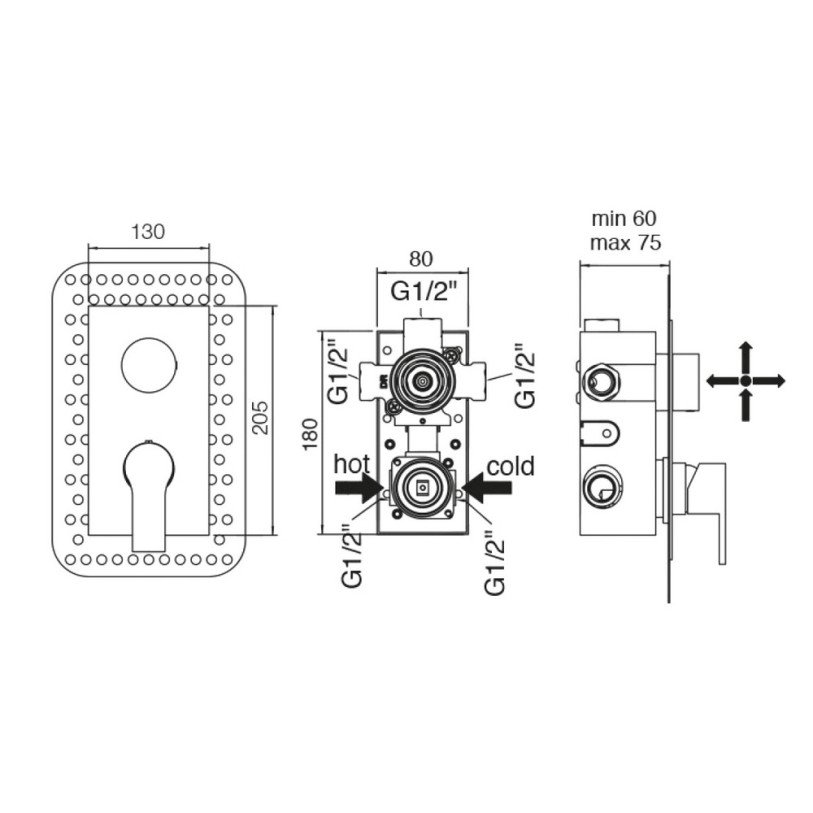 | Комплектация | Смеситель скрытого монтажа, крепежи. |
