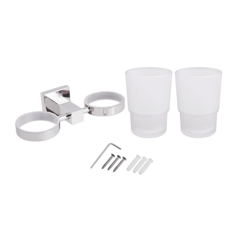 Двойной стакан Qtap Sklenka 6201103C изготовлен из качественных материалов и имеет привлекательный внешний вид. В изделии используются уплотнительные кольца, благодаря которым стаканы плотно прилегают к держателю. Настенный монтаж не доставит лишних хлопот, так как крепежи входят в комплектацию. Стаканы съемные, благодаря чему уход за ними будет несложным.
