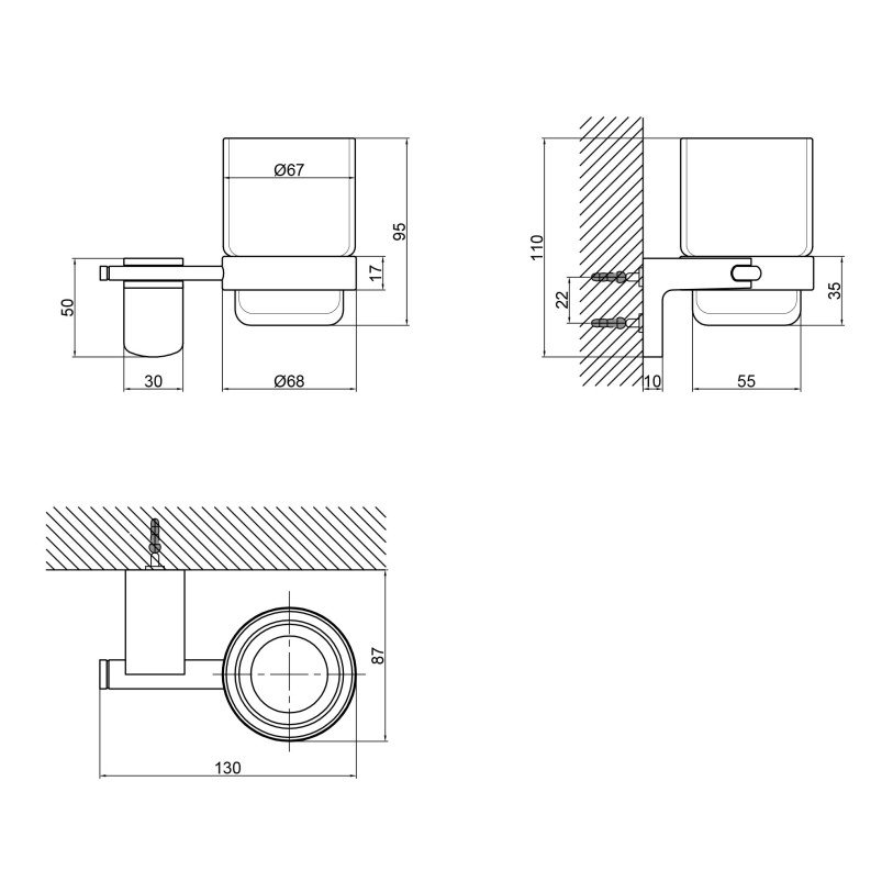 | Комплектация | Стакан с держателем, крепежи (дюбель-гвоздь - 2 шт.; ключ шестигранный - 1 шт.). |