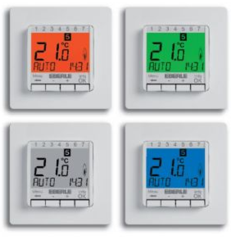 Программируемый терморегулятор Eberle FIT 3F для систем теплого пола - энергосберегающий интеллектуальный регулятор температуры с выносным датчиком, программируемый на день и неделю. Большой ЖК-дисплей. Гибкая автоматизированная адаптация в соответствии с микроклиматом помещения и индивидуальными настройками пользователя.