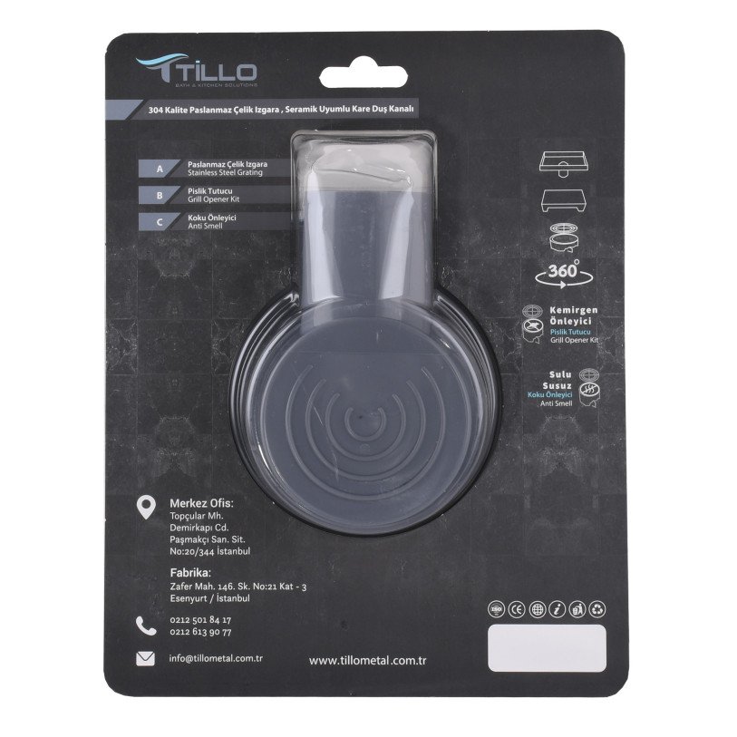 TM216-TILLO Трап пласт., решітка нерж.150х150, горизонт. DN 50,сухий затвір(поворотній), ТуреччинаКанал використовується для водовідведення з душових, басейнів та інших приміщень. Корпус з порогом виготовлений зі стійкого до агресивних середовищ, міцного пластику,