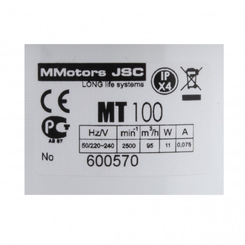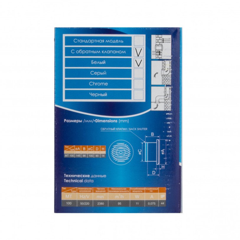 Вытяжной вентилятор MT 100, 95 м³/ч, белый, с обратным клапаном
