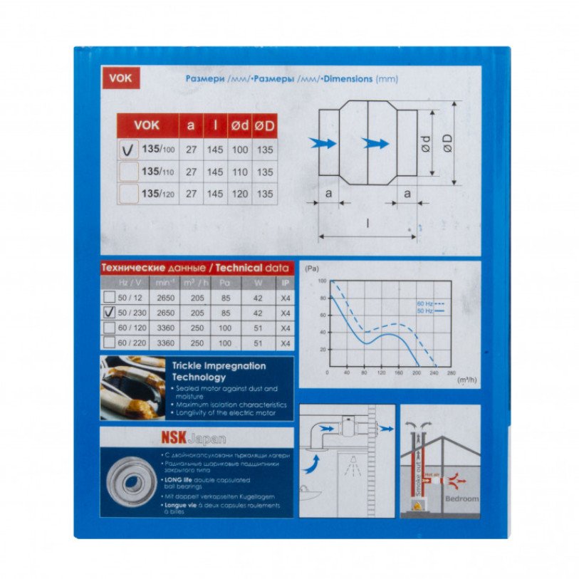 Жаростойкий высокотемпературный канальный вентилятор ВОК-T 135/100, 205 м³/ч, с обратным клапаном