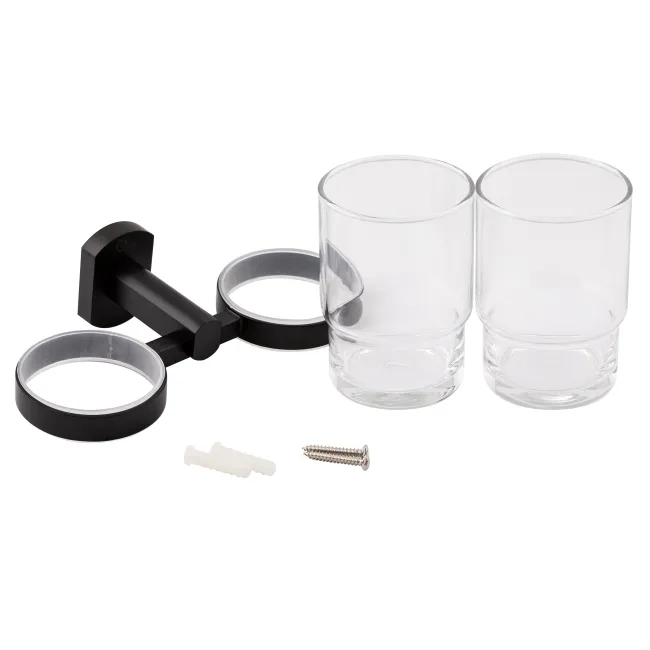 Склянка з тримачем Qtap Liberty настінна подвійна QTLIBBLM1155 Black