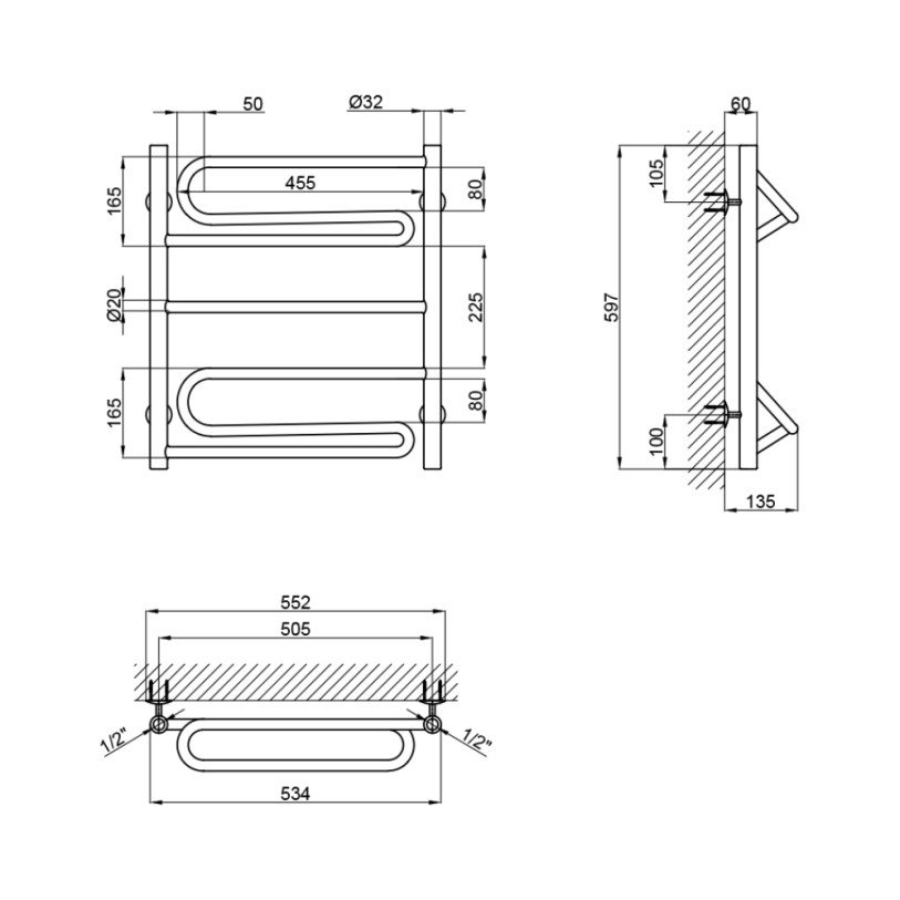 Сушарка для рушників водяна Lidz Zigzag (CRM) D32/20х1/2" 500x600 P2