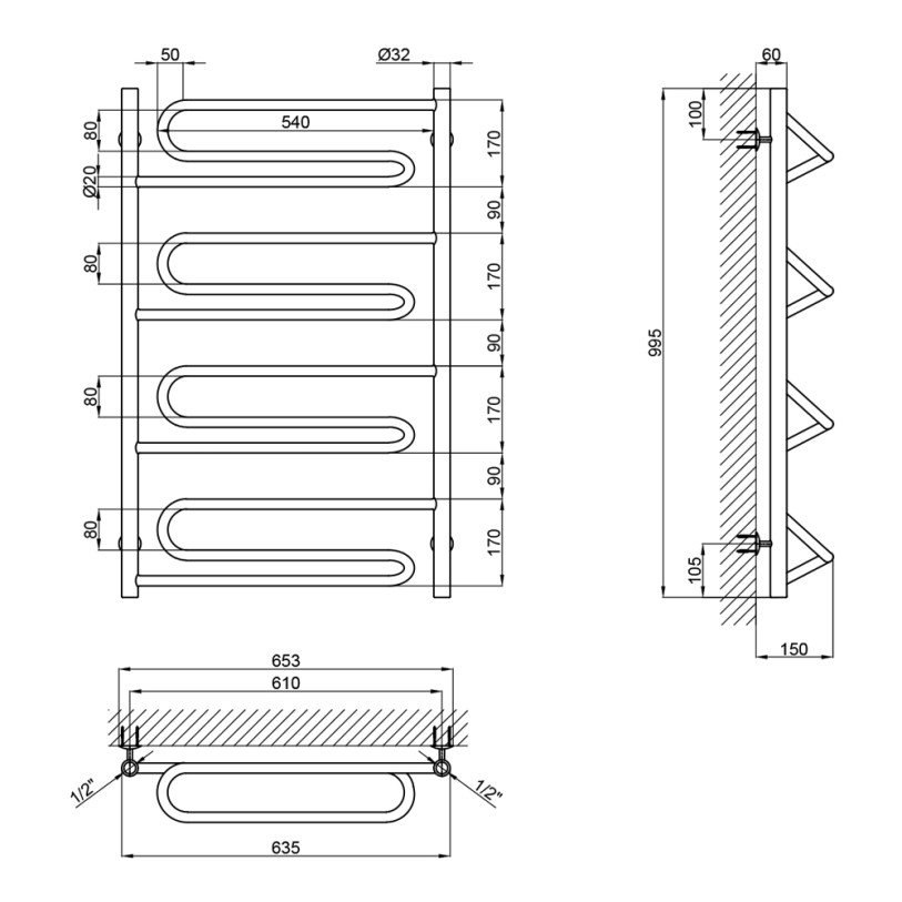 | Комплектація | Сушарка рушників, комплект кріпильних деталей (дюбель-цвях - 4 шт.; втулка кріпильна - 4 шт.; гайка - 4 шт.; гвинт установний - 4 шт.; блюдце декоративне - 4 шт.; ключ шестигранний - 1 шт.) |