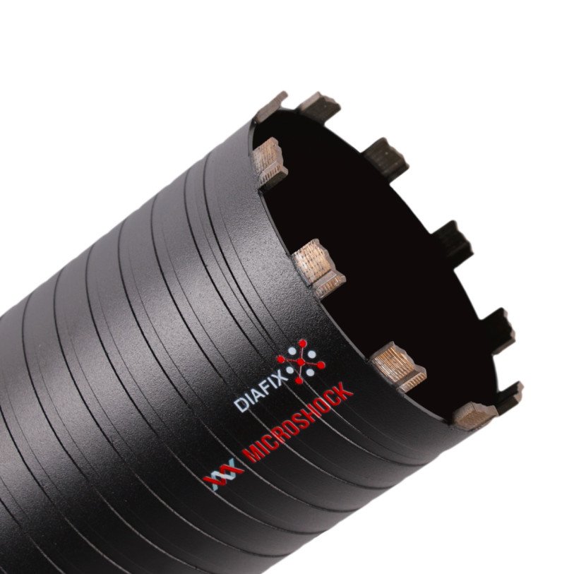 Свердло RS-TX, розроблене для свердлильних машин з мікроударом - це на сьогодні найшвидший інструмент для свердління в сухому режимі. Гвинтовий корпус свердла ефективно виводить шлам із зони свердління. Алмазні сегменти, наварені на корпус лазером, мають форму "турбо" з високоміцним, впорядковано викладеним алмазом.