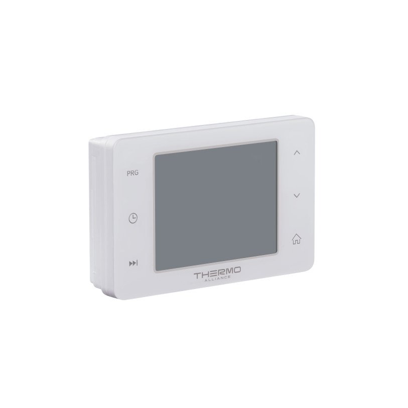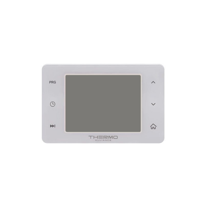 Тижневий програмований термостат Thermo Alliance ТА-2701 підключається до котла за допомогою кабелю та керує процесами увімкнення/вимкнення опалювального приладу за "Сухим Каналом". Блок кімнатного термостата використовується як графічний інтерфейс користувача для визначення та контролю температури в приміщенні. Оскільки відстань від кімнатного термостата до котла в різних приміщеннях відрізнятиметься, кабель підключення не входить до комплекту постачання продукції.