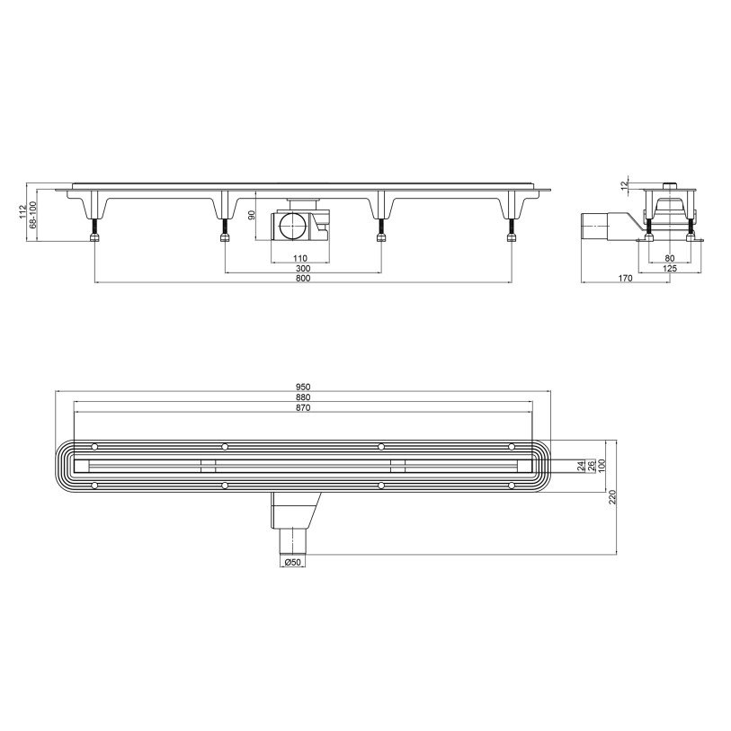 | Комплектація | Трап, гідроізоляційний комплект, ніжки, кріпильні деталі. |