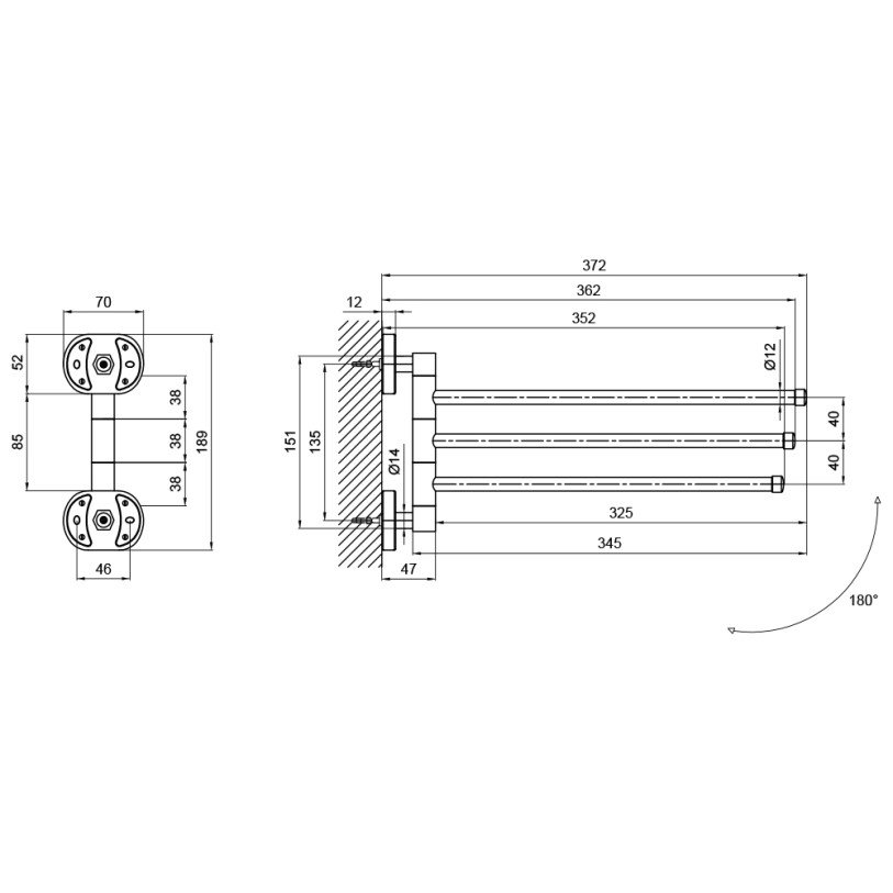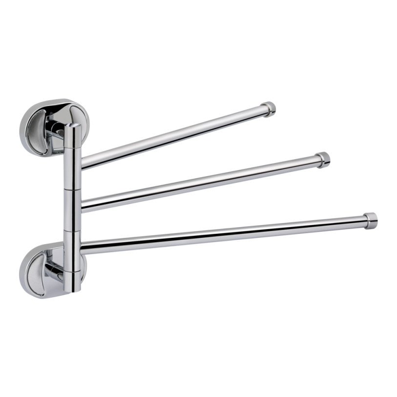 Тримач для рушників Lidz (CRM) 114.07.03 виконаний з металу з хромованою глянсовою поверхнею, яка легко миється та не піддається корозії. Тримач з декорованими вставками складається з кріплення і трьох стрижнів довжиною 375 мм кожен, що дозволяє розмістити три рушники. Крім того, виріб обладнано поворотним механізмом для повороту стрижнів в необхідному напрямку. Прихований монтаж не порушує дизайну ванної кімнати й не псує обробку.