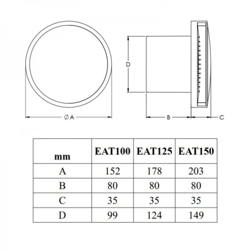 Вентилятори E-extra серії ЕAТ призначені для установки в ванних кімнатах, санвузлах, кухнях, житлових, офісних і громадськихприміщеннях. Встановлюються безпосередньо в отвір вентиляційної шахти, в підвісній стелі. Вентилятори Europlast серії EAT відрізняються своїм красивим дизайном, оскільки вони мають передню кришку. Двигун вентилятора оснащений кульковим підшипником. Також належить відмітити простоту в обслуговуванні: легкоз'ємна передня панель дозволяє при необхідності виконати чистку вентилятора з приміненням м'яких миючих засобів.
