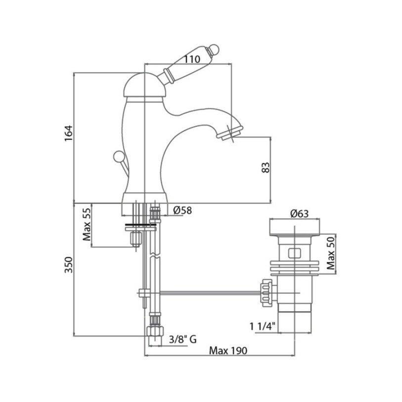 | Комплектація | Змішувач, гнучкий підвід, донний клапан, кріпильні деталі. |