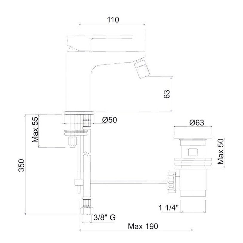 | Комплектація | Змішувач, гнучкий підвід, донний клапан, кріпильні деталі. |