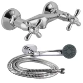 | Комплектація | Змішувач. Утримувач для душу. Ручна лійка, Шланг душовий. Ексцентрики для змішувачів настінного монтажу. Декоративні чаші |