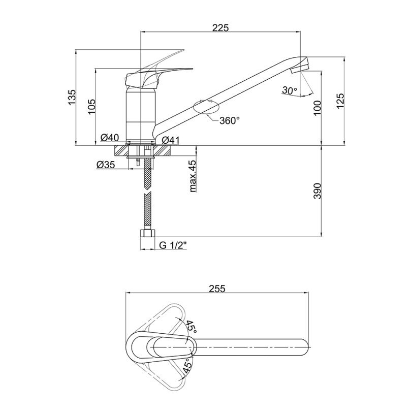 | Дод. характеристики | Довжина гнучкого підводу - 390 мм. |