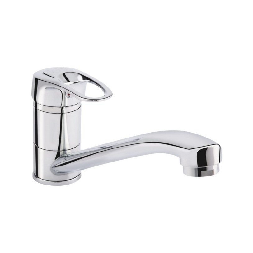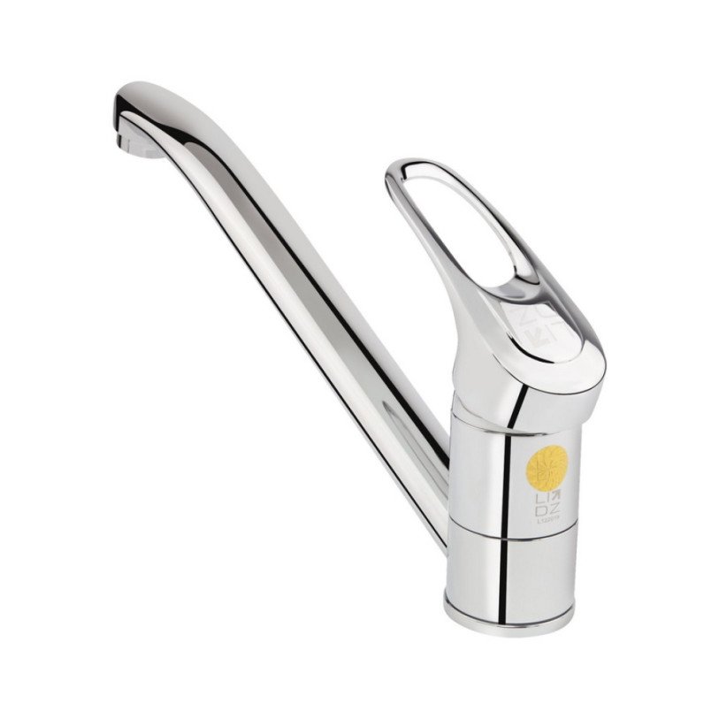 Змішувач для кухні з поворотним виливом Lidz (CRM) 16 37 002 00 виконаний з глянсовою блискучою поверхнею. Він монтується над кухонною мийкою в стільницю врізним способом. Подача води вмикається завдяки картриджу після повороту важеля в необхідне положення. Для зручності на нього нанесено маркування Х + Г води та додано отвір проти ковзання мильних рук.