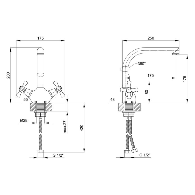 Змішувач для кухні Lidz (CRM) 75 21 271F-6 виготовлений з цинку. Завдяки глянсовому хромованому покриттю має оригінальний зовнішній вигляд. Виконаний в класичному стилі, з вентильними ручками для регулювання потоку холодної та гарячої води.