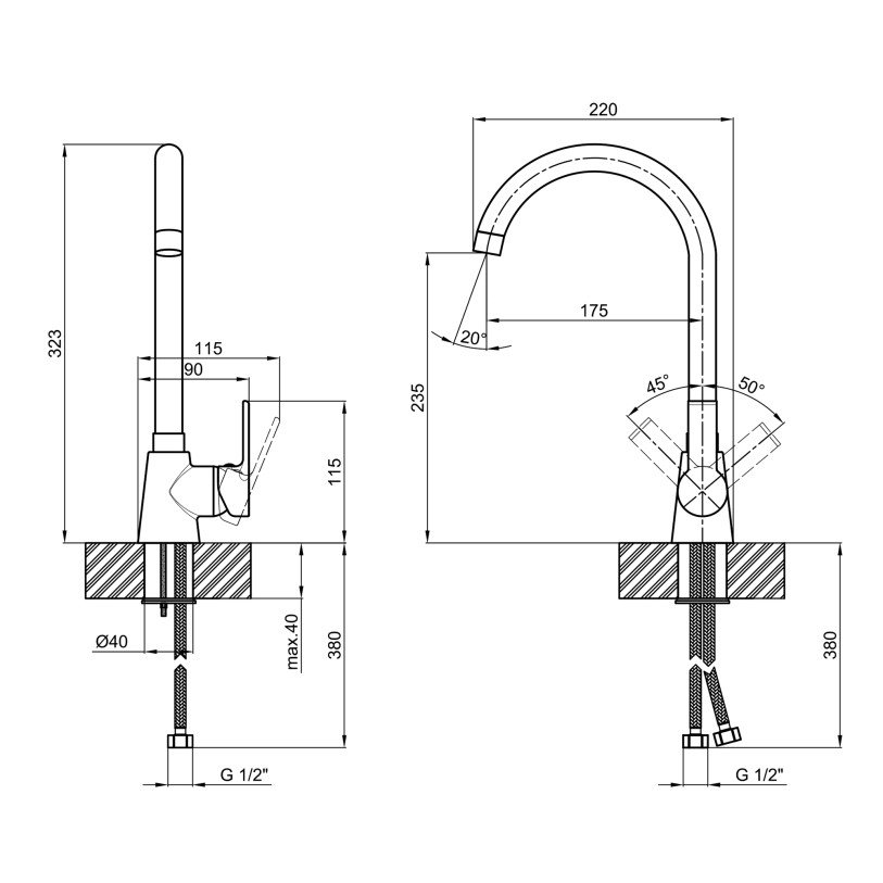 | Дод. характеристики | Довжина гнучкого підводу - 380 мм. |