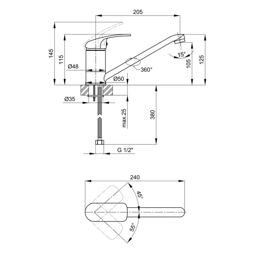 | Дод. характеристики | Довжина гнучкого підводу - 380 мм. |
