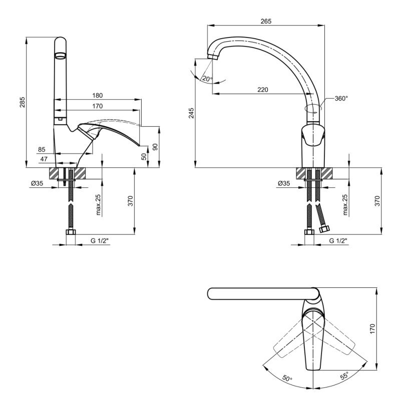 | Дод. характеристики | Довжина гнучкого підводу - 370 мм. |