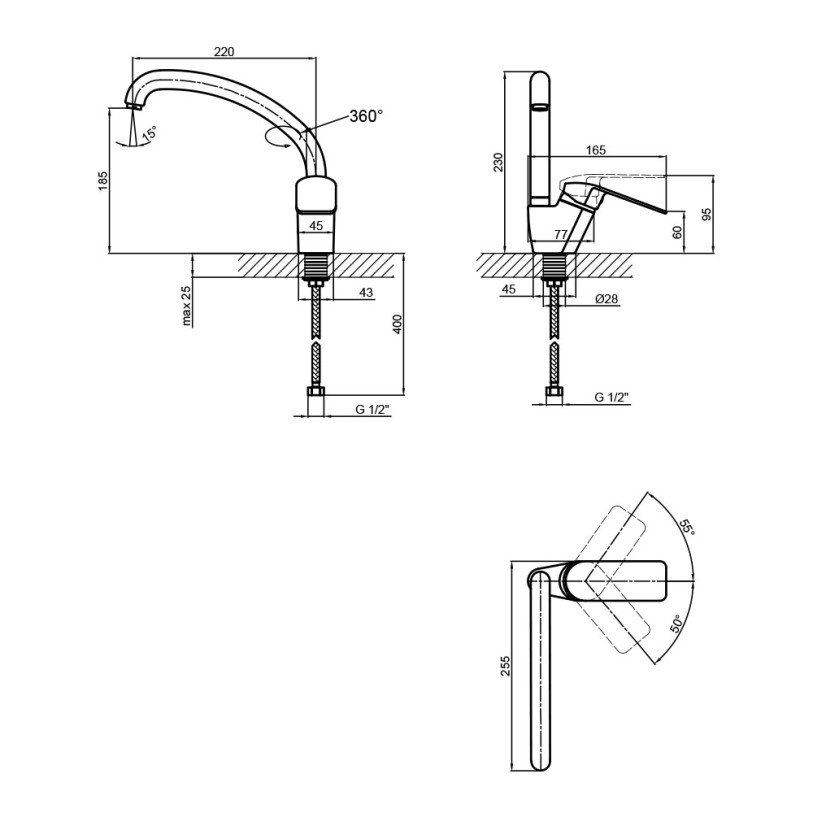 | Довжина зливу, мм | 220 |