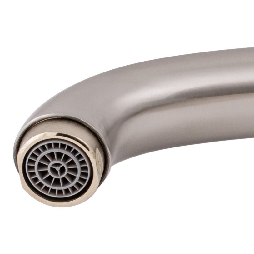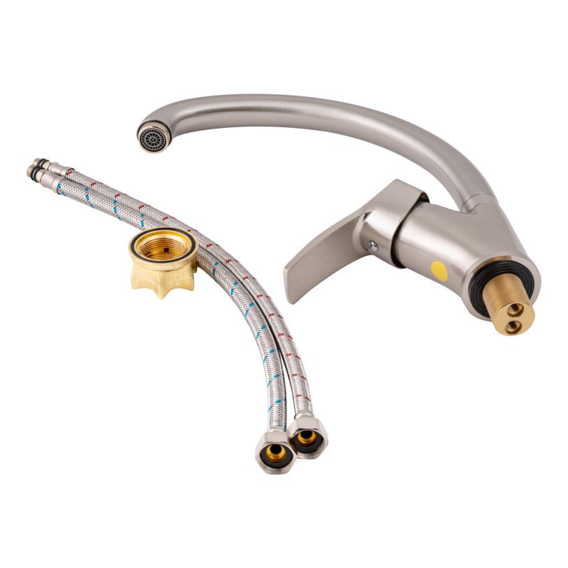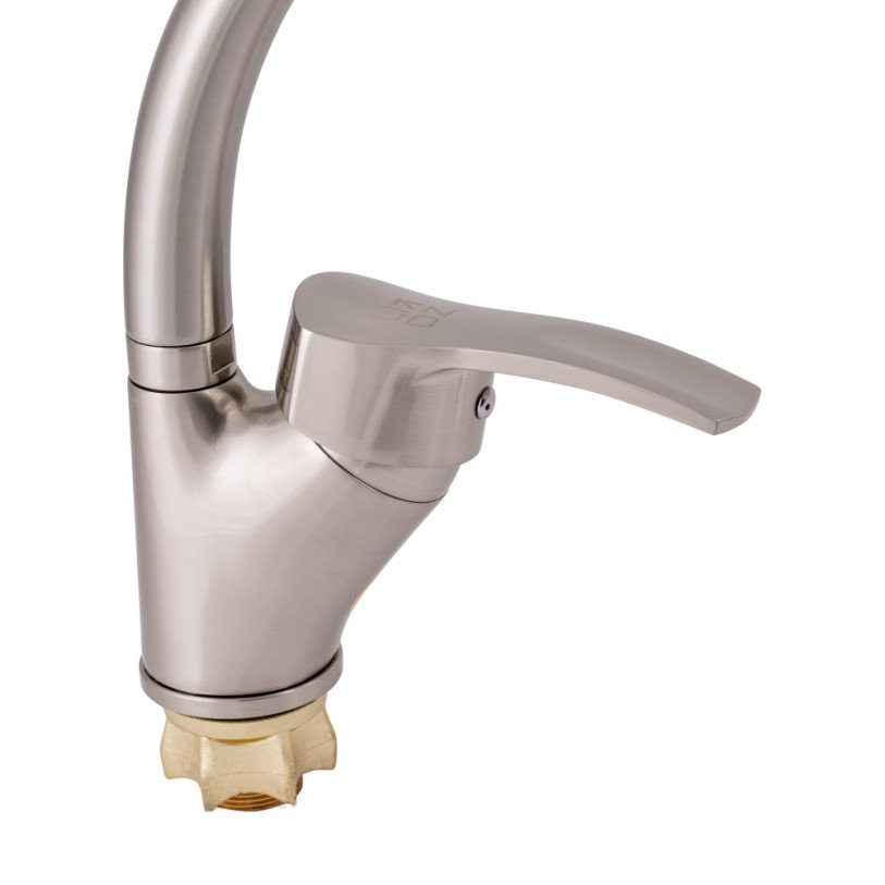 Змішувач для кухні Lidz (NKS) 20 38 011 03 виготовлений з цинку. Має брашовану нікельовану поверхню, завдяки якій виглядає оригінально. Змішувач виконаний в класичному стилі, з високим С-виливом і зручною ручкою для перемикання холодної і гарячої води.