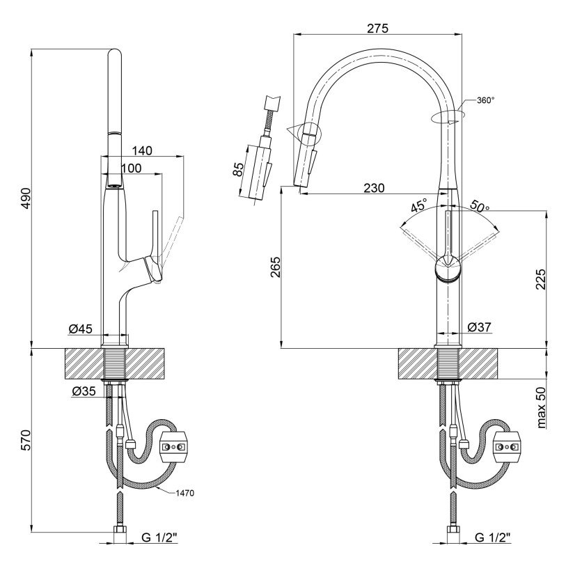 | Дод. характеристики | Довжина висувного шланга - 1470 мм. Довжина гнучкого підводу - 570 мм. |