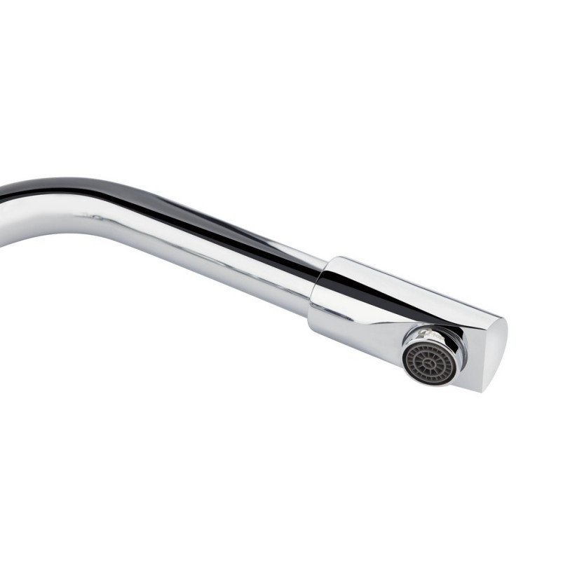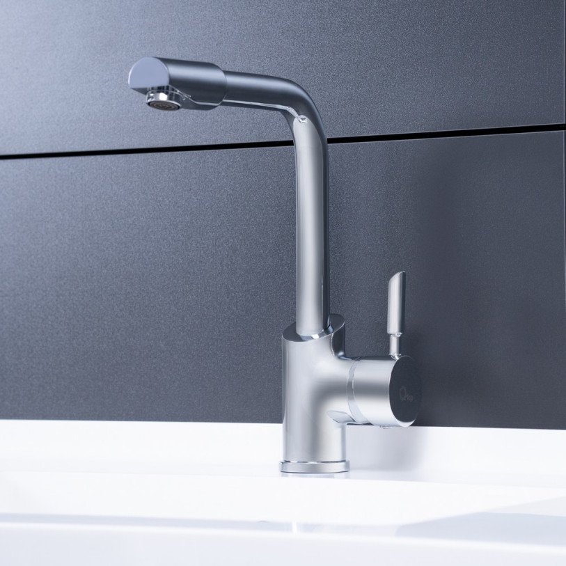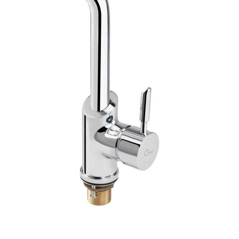 Змішувач для кухні Qtap Elit СRM 007 виготовлений з високоякісної харчової латуні, яка стійка до впливу корозії, ударів і появи тріщин. Глянсове хромоване покриття не тільки підвищує довговічність змішувача, а й надає йому привабливості. Змішувач має одноважільне управління, за допомогою якого можна відрегулювати температуру і напір холодної та гарячої води. Виконаний в сучасному стилі з Г-подібним виливом, який ідеально доповнить інтер‘єр кухні.