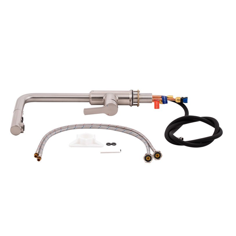 | Комплектація | Змішувач, гнучкий підвід, шланг для висувної лійки, якір, кріпильні деталі. |