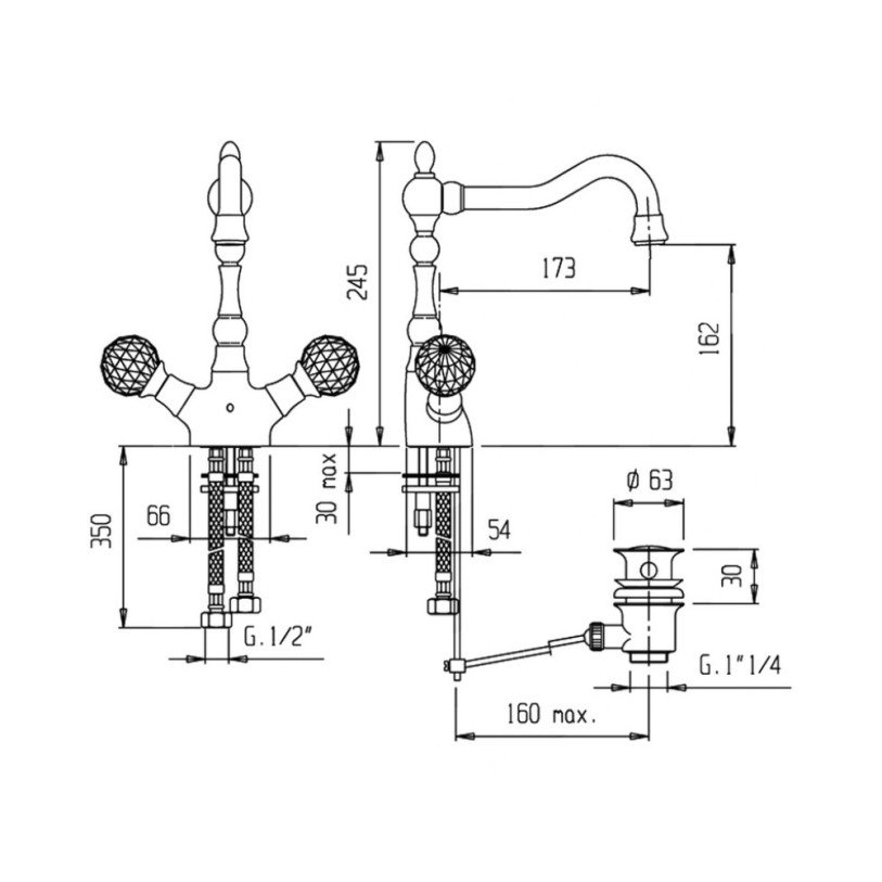 Змішувач для раковини Bianchi Boheme LVBBOM10360ACRM виготовлений з високоякісної латуні, яка стійка до впливу корозії, ударів і тріщин. Глянцева хромована поверхня надає змішувачу оригінального зовнішнього вигляду. Змішувач має вентильне управління, за допомогою якого можна відрегулювати температуру та напір холодної й гарячої води. Підключення води відбувається через гнучкі шланги з діаметром підмикання 1/2". Виконаний в ретро-стилі та стане розкішною родзинкою в інтер‘єрі санвузла.