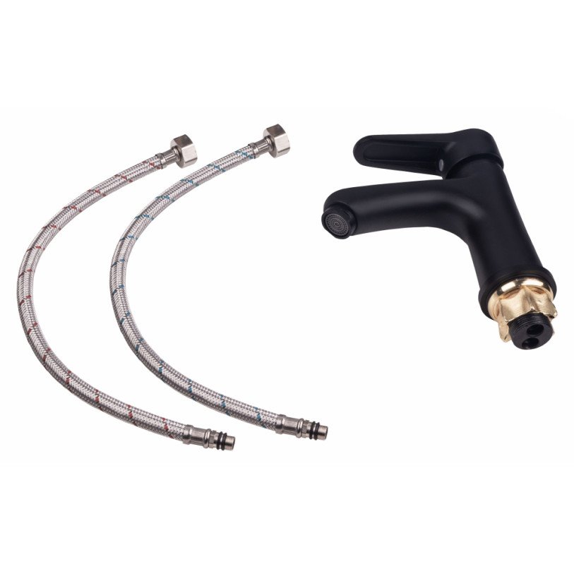 Змішувач для раковини Lidz (BLA) 14 43 001F виготовлений з цинку. Матова поверхня чорного кольору додає змішувачу не тільки довговічності, а й оригінальний зовнішній вигляд. Він монтується в отвір для змішувача на пристінному бортику умивальника або на стільниці. Напір і температура води регулюються поворотом важеля. Підключення води відбувається через гнучкі шланги, які входять в комплект поставки. Змішувач виконано в сучасному стилі, він зручний у використанні.