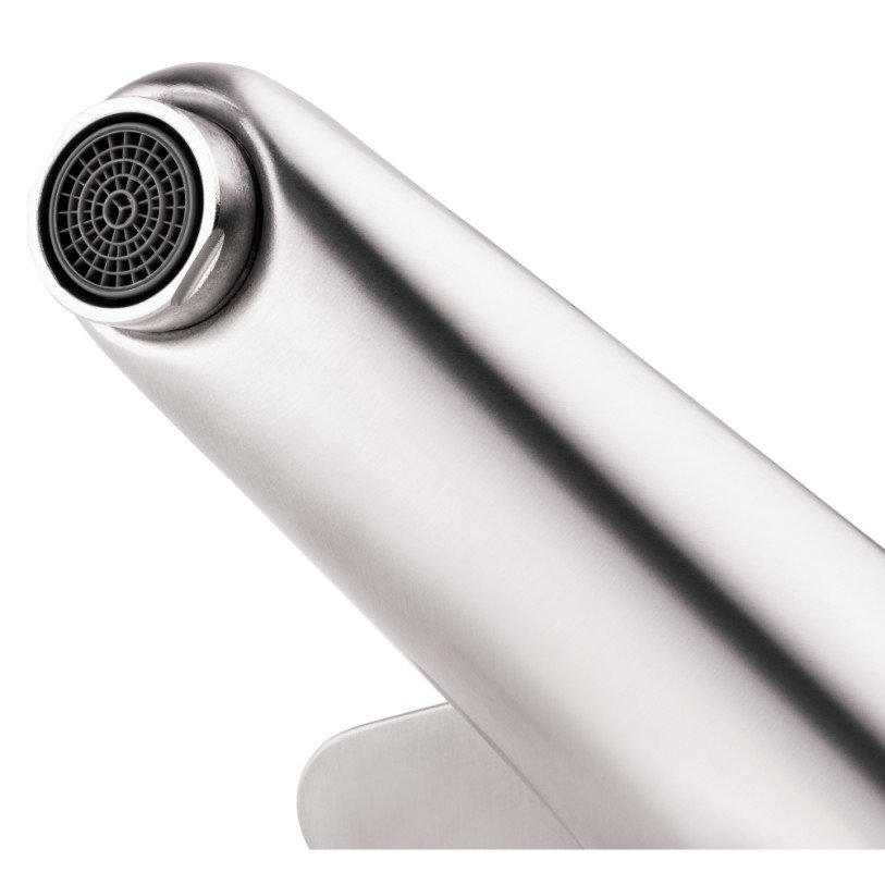 Змішувач для раковини Lidz (NKS) 09 35 001F виконано з нержавіючої сталі. Він монтується в отвір для змішувача на раковині або на стільниці врізним способом. Напір води і її температура регулюються поворотом важеля в необхідне положення. Важіль має нанесені маркування Х + Г води і фірмовий логотип виробника.