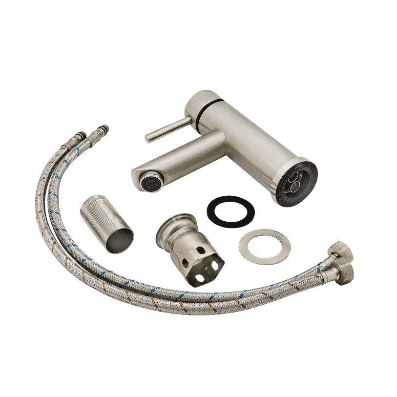 Змішувач для раковини Lidz (NKS) 12 32 001F виготовлена з нержавіючої сталі, яка стійка до впливу корозії, ударів і тріщин. Нікельована бракована поверхня надає змішувачу не тільки довговічність, але й оригінальний зовнішній вигляд. Інтенсивність водного потоку та температура регулюються за допомогою переміщення важеля. Підключення води відбувається через гнучкі шланги з діаметром підмикання 1/2", які є в комплекті.