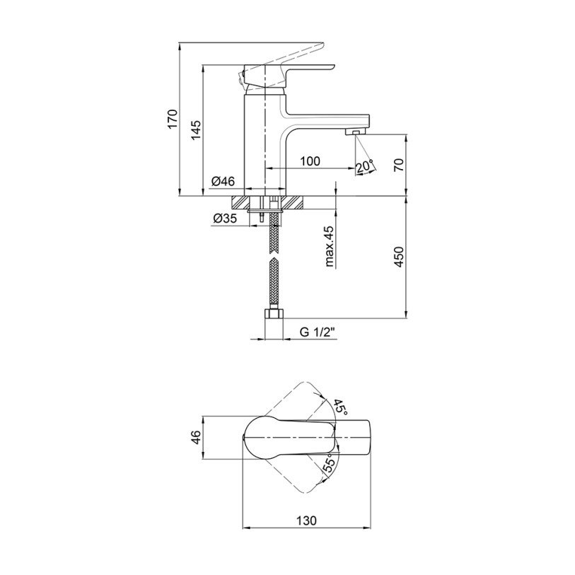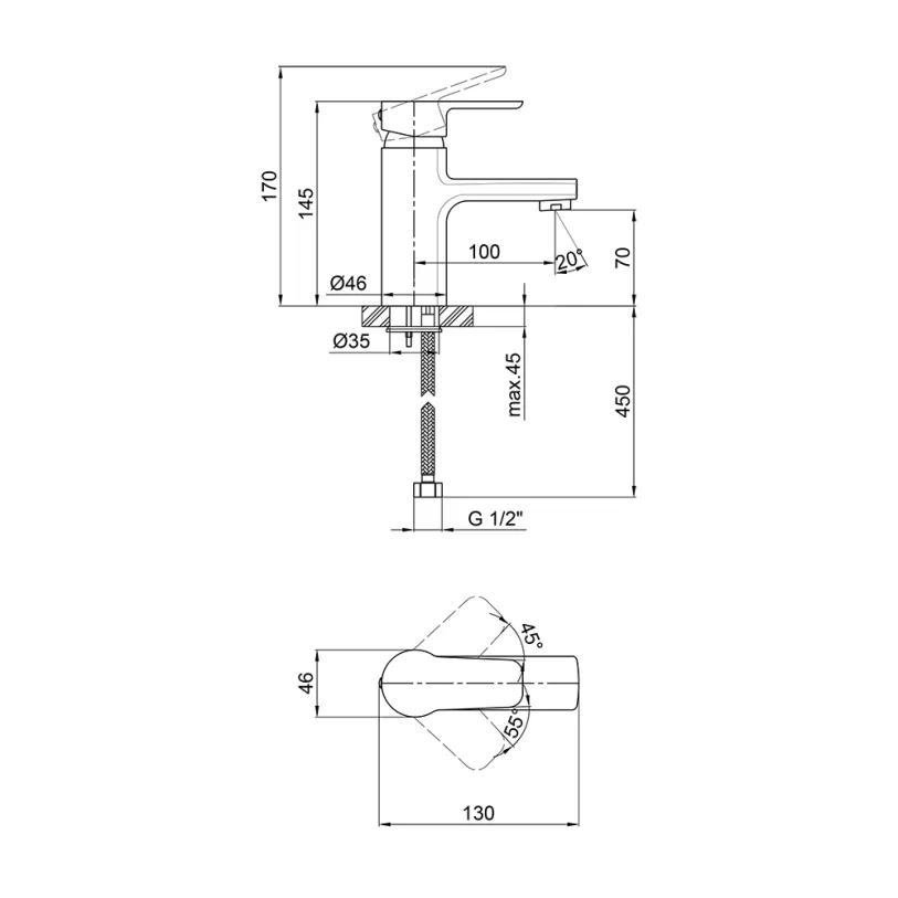 Змішувач для раковини Qtap Eco CRM 001 виготовлений з високоякісної харчової латуні, яка стійка до впливу корозії, ударів і тріщин. Глянсове хромоване покриття не тільки підвищує довговічність змішувача, а й надає йому оригінальний зовнішній вигляд. Інтенсивність водного потоку та температура регулюються за допомогою переміщення важеля. Підключення води відбувається через гнучкі шланги з діаметром підмикання 1/2". Виконаний в сучасному стилі, який ідеально доповнить інтер‘єр санвузла.